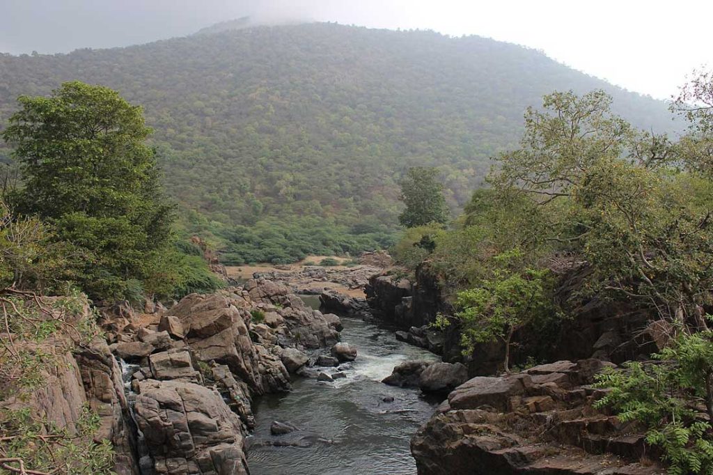 - The main attraction, where the Cauvery River forms multiple cascades over rocky terrain.